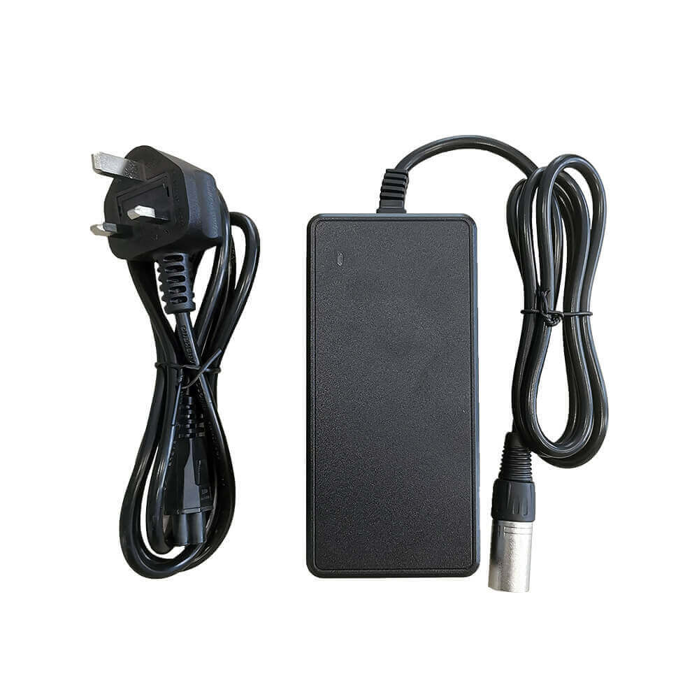 This is our new type of Li-ion Battery Charger (24V 3A), which will charge your mobility scooter or power chair faster than the previous 2A charger. Available in different power cords based on your country.