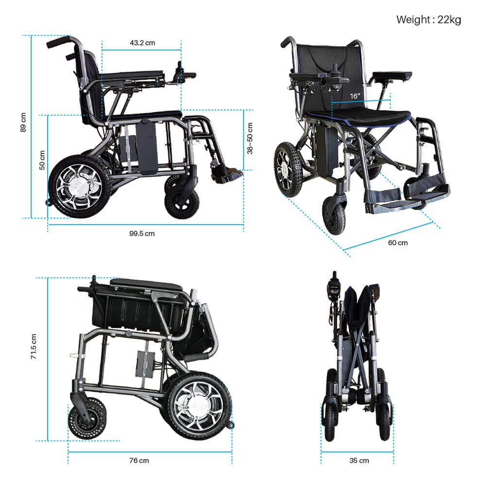 - Seat height at 51.5 cm, which is a more appropriate seat height. (You probably noticed most of the portable power wheelchairs in the market have much lower seat height)