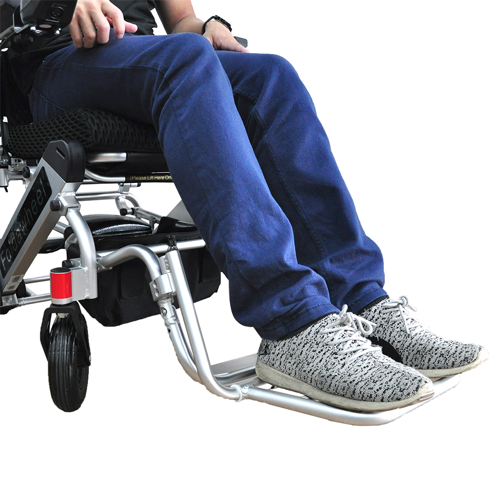 For those who love the PW-999UL Foldawheel, but want to stretch out a little bit more, here comes the solution. This is an easy detachable footrest extension that you can take it off or put it on within 3 seconds. Just install our specially designed clamps on the existing footrest, and then hook the footrest extension onto the clamps whenever needed. Take it off easily when you need to stow away the PW-999UL Foldawheel. Highly recommended for users with knee issues such as rigidity, or taller users.