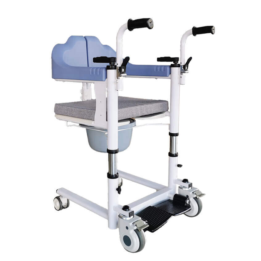 Functions as a commode chair and a patient transfer aid, simplifying movement between beds, toilets, and other seating areas.