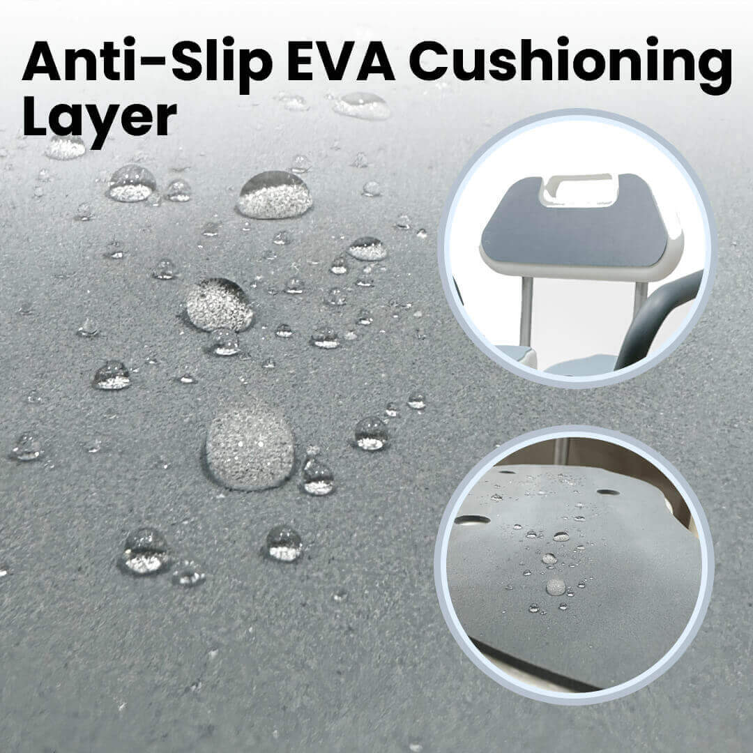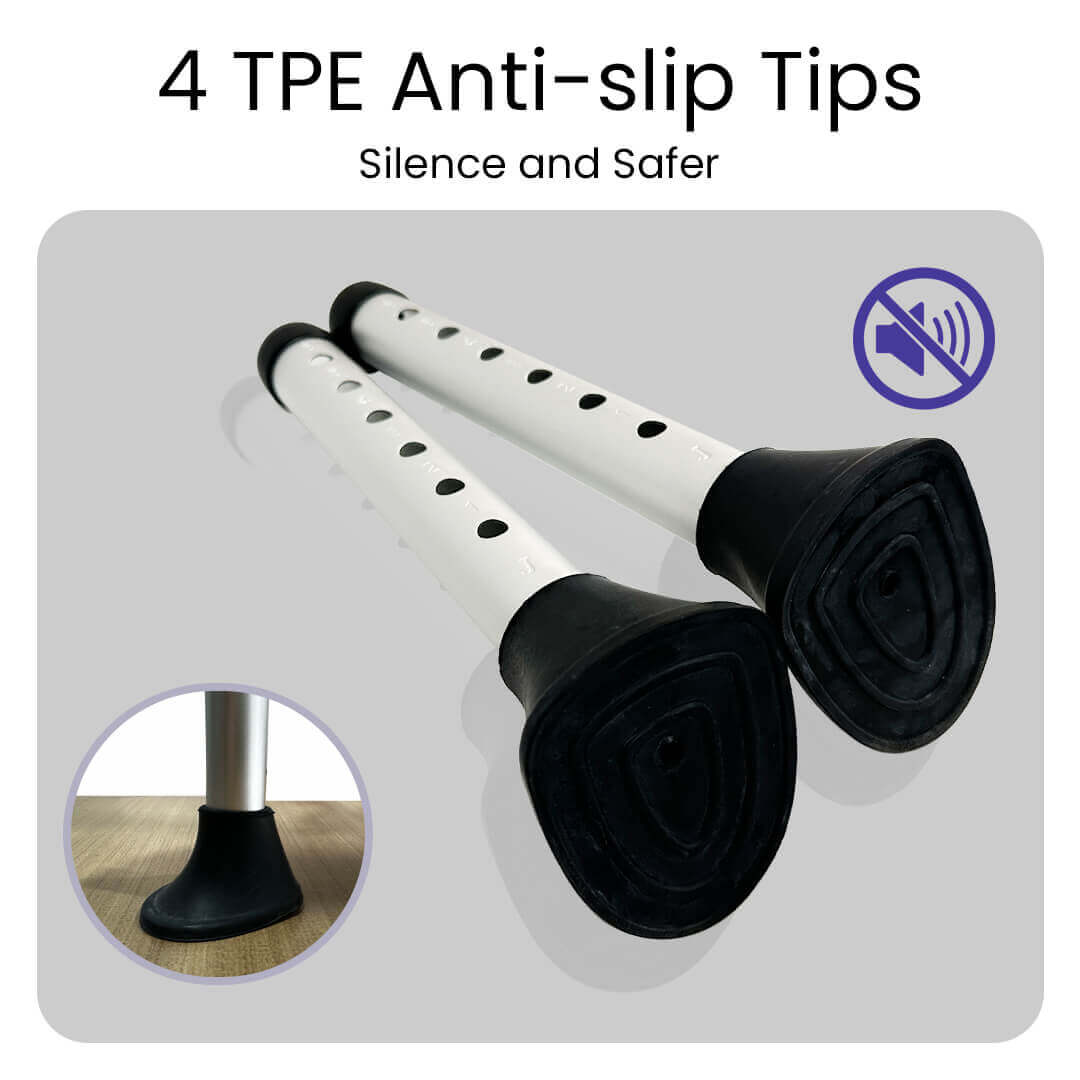 Fitted with four TPE anti-slip tips, the chair stays steady even on wet bathroom floors.