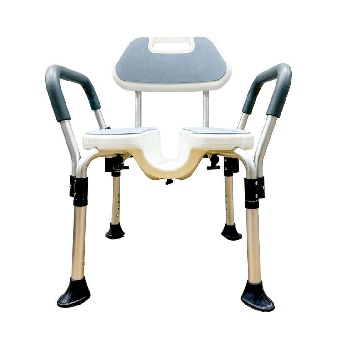 Ideal for elderly users, recovering patients, or caregivers needing a hygienic and secure shower chair that balances portability and function.
